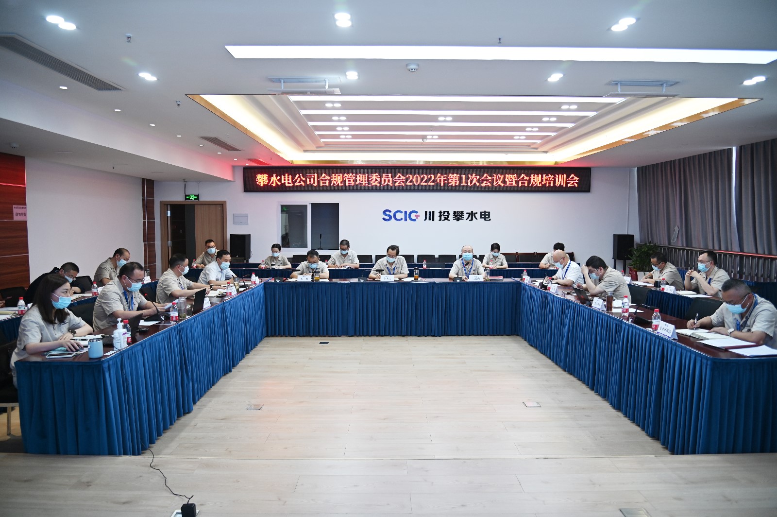 4月23日,攀水电公司合规管理委员会2022年第1次会议暨合规培训会在公司2620会议室召开。龙8国际副总经理、攀水电公司党总支书记、董事长、川投(攀枝花)新能源开发有限公司董事长、合规管理委员会主任徐孝刚出席会议并作重要讲话,攀水电公司党总支委员、总经理、合规管理委员会副主任吴巍屿主持会议,公司合规管理委员会、工作小组、合规办公室人员共计21人参加会议,会议严格落实疫情防控要求,全程佩戴口罩。