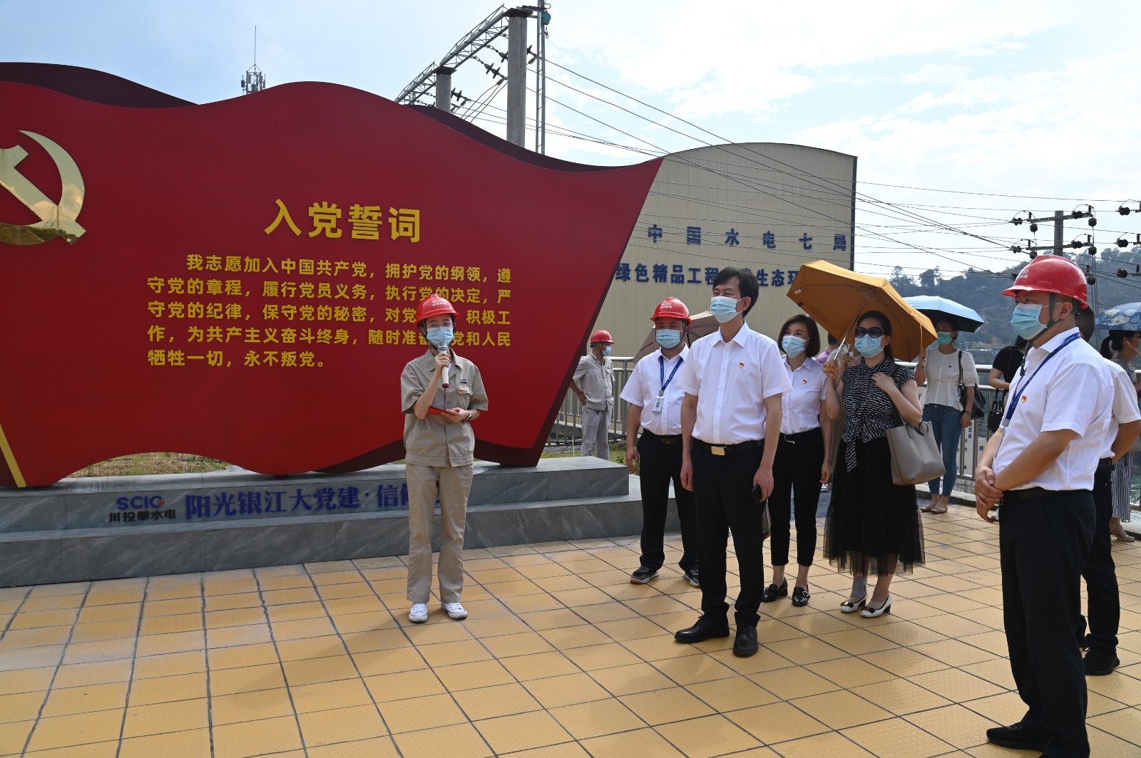 田巨龙一行首先参观了银江水电站施工现场和大党建宣传阵地。在施工现场,吴巍屿介绍了银江水电站的基本情况,田巨龙一行对银江水电站成功实现提前一年大江截流表示充分钦佩,并表示十分期盼银江水电站蓄水后高峡平湖、水城相融的壮观景象。在大党建宣传阵地,讲解员王思琪向来宾介绍了龙8国际党委“五个先锋”党建品牌总体要求和攀水电公司“七色阳光大党建”的实施情况。田巨龙一行表示,公司“七色阳光大党建”品牌特色鲜明,很好地结合攀枝花市区域特色和银江水电站工程建设任务,希望医院党委能进一步加强与攀水电党总支的交流学习。