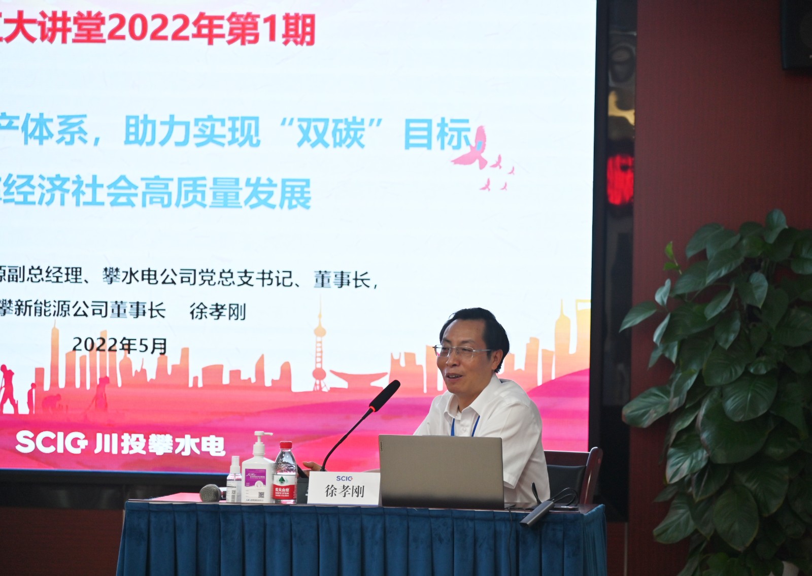 活动中,医院急诊科苏晓勇主任、肿瘤科廖玲医师分别以《热爱生命,关注肿瘤》和《心肺复苏术》为主题,为攀水电公司和参建单位员工代表带来了的健康知识讲座,并进行了身临其境的互动教学。徐孝刚讲授了《构建清洁能源生产体系,助力实现“双碳”目标,支撑经济社会高质量发展》为题的主题党课,从“碳达峰与碳中和的背景”、“双碳目标的形势要求”、“清洁能源体系在双碳目标中的重要地位”、“构建清洁能源生产体系的实施路径及公司相关工作开展情况”四个方面,向大家介绍了目前国家的能源发展战略、发展要求和发展形势,并向大家介绍了攀水电公司和攀新能源公司相关工作的推进情况。徐孝刚讲到,公司作为能源行业的国有企业,在构建清洁能源生产体系的过程中责任重大、使命光荣,并号召公司党员群众要不忘初心、牢记使命,为实现双碳目标积极做出更大的贡献。